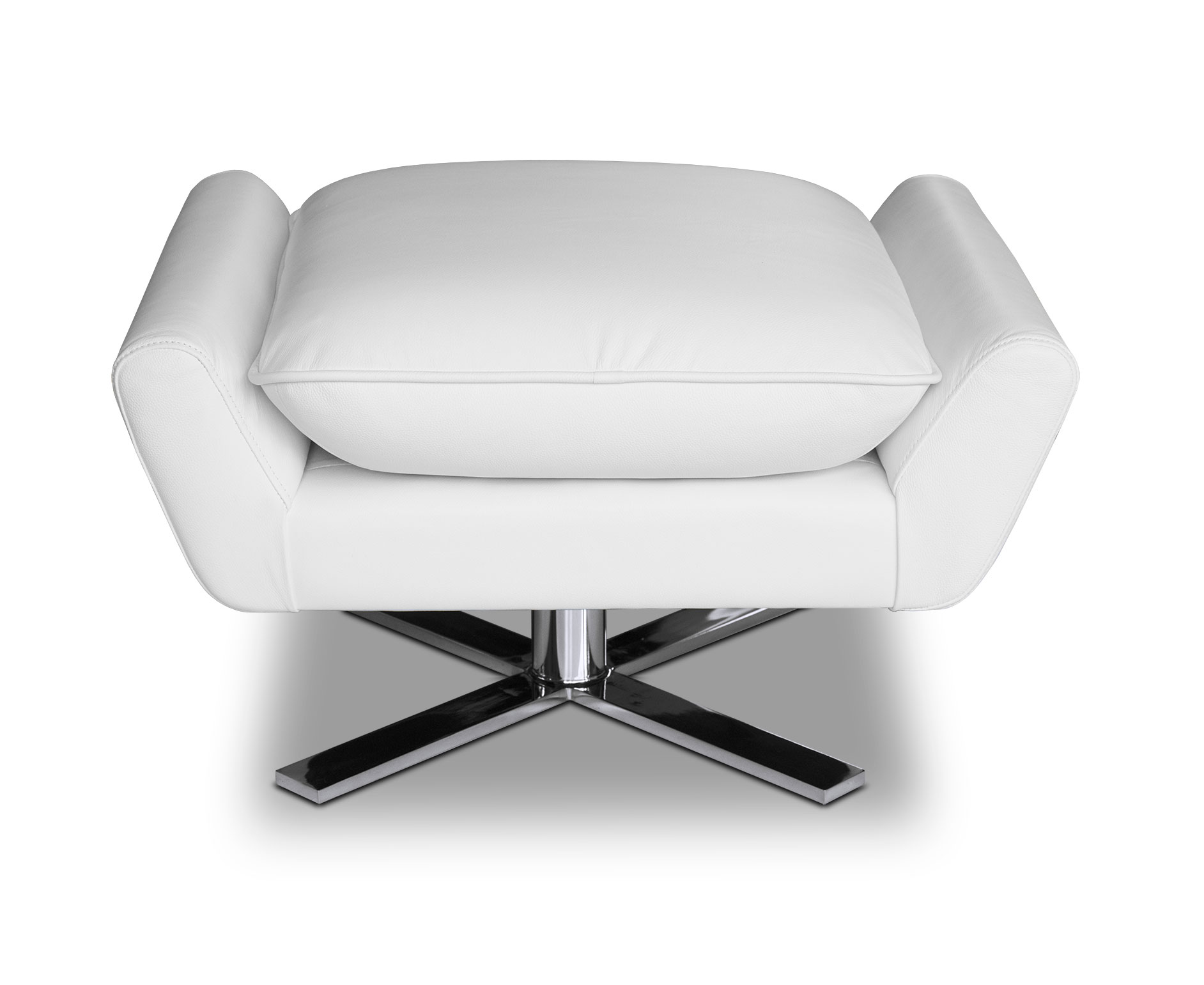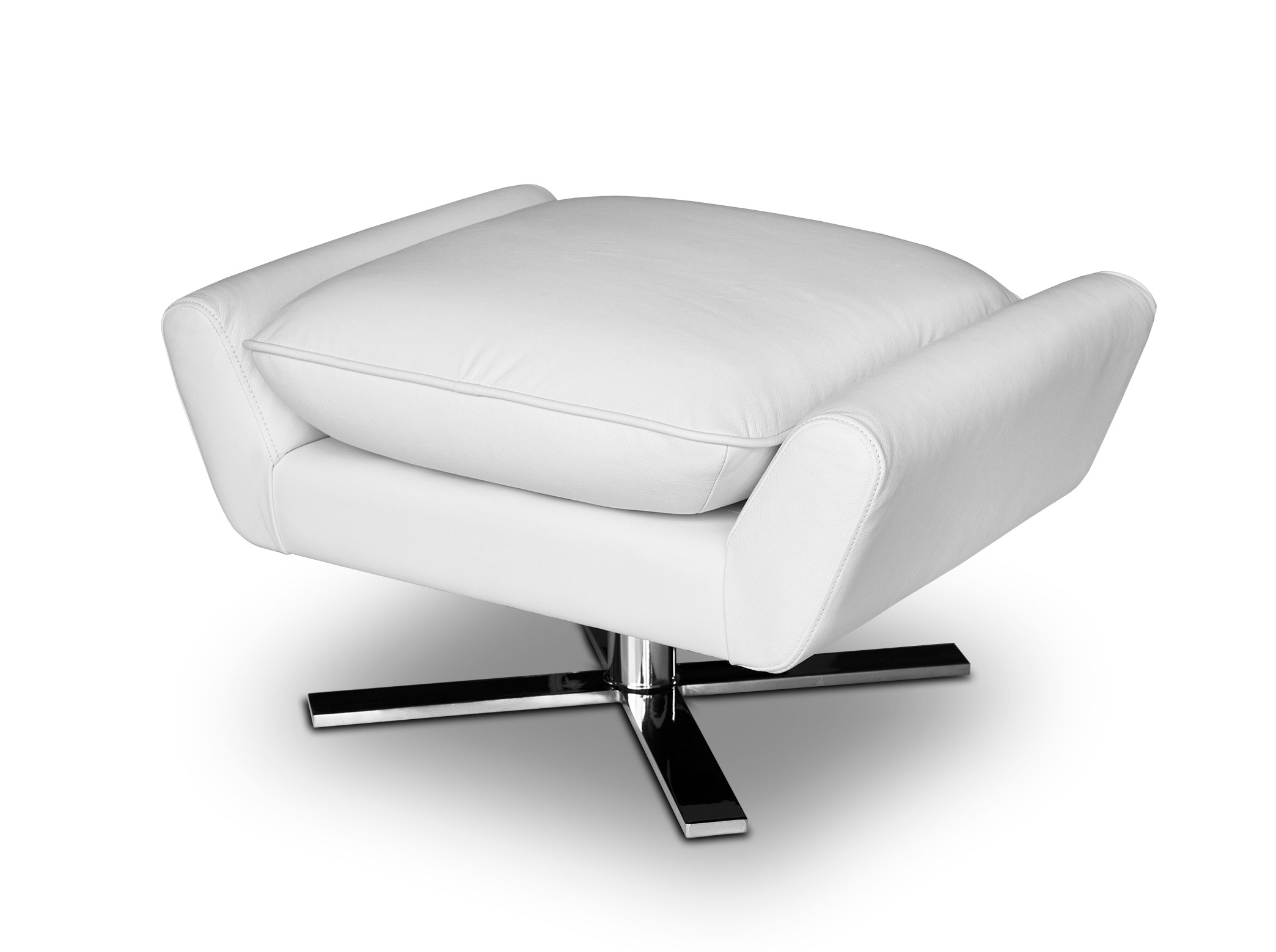 Bequemer Fußhocker Echt Leder Weiß auf stabilem Edelstahlfuß.