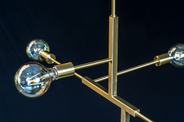 Postmoderne Messing Deckenlampe Minimalist mit großen Filament Vintage LED's Goldfarben gedämpft.